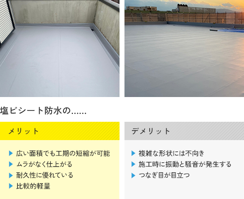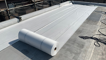 シート防水とは、塩化ビニールやゴム製のシートを接着していく防水工事。