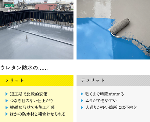 ウレタン防水も塗膜防水ですから、施工の際は高い技術力が必要になります。